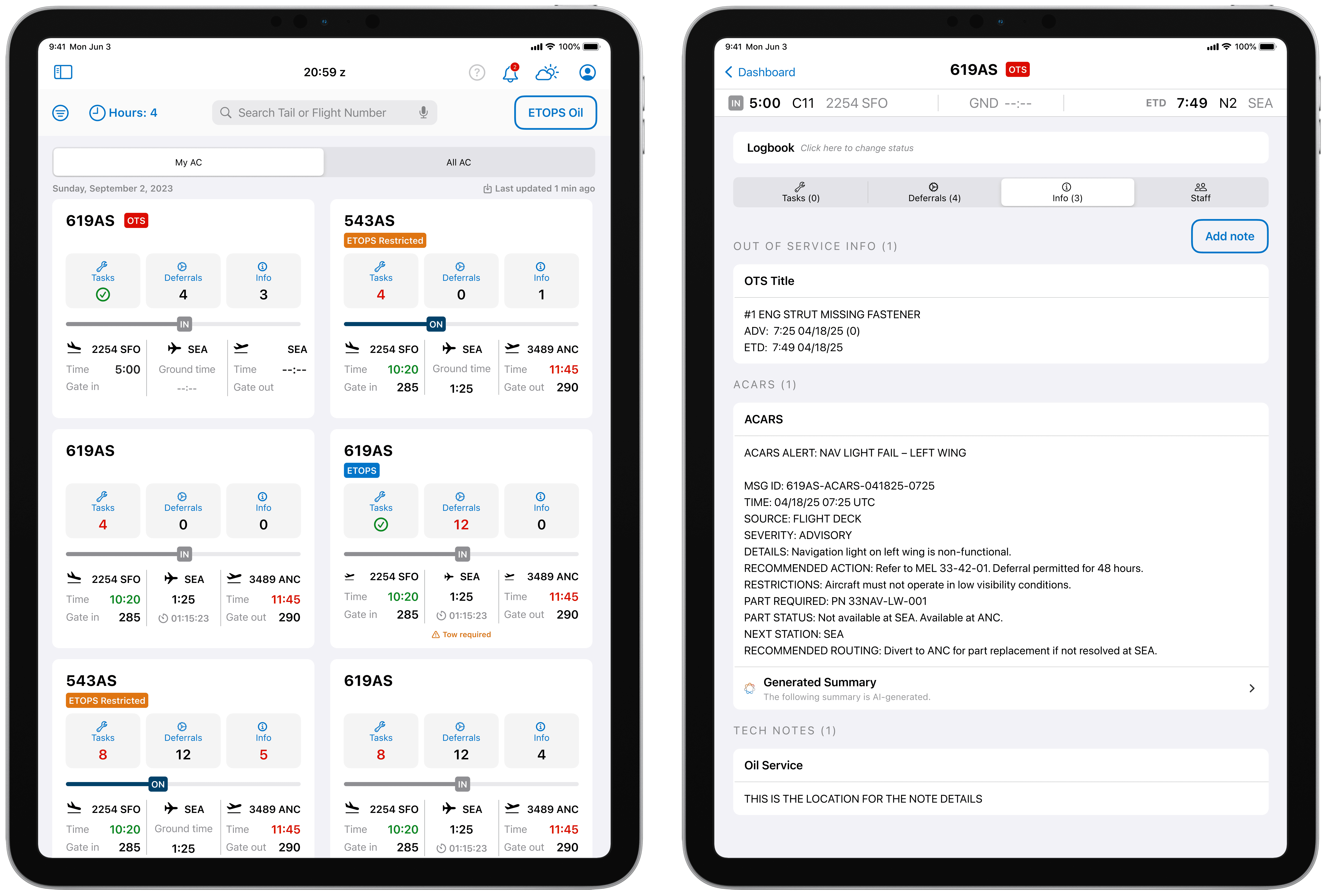Alaska Airlines’ MxHub iPad app is the core platform for 1k+ maintenance technicians to read, log, and respond to aircraft messages in real time.